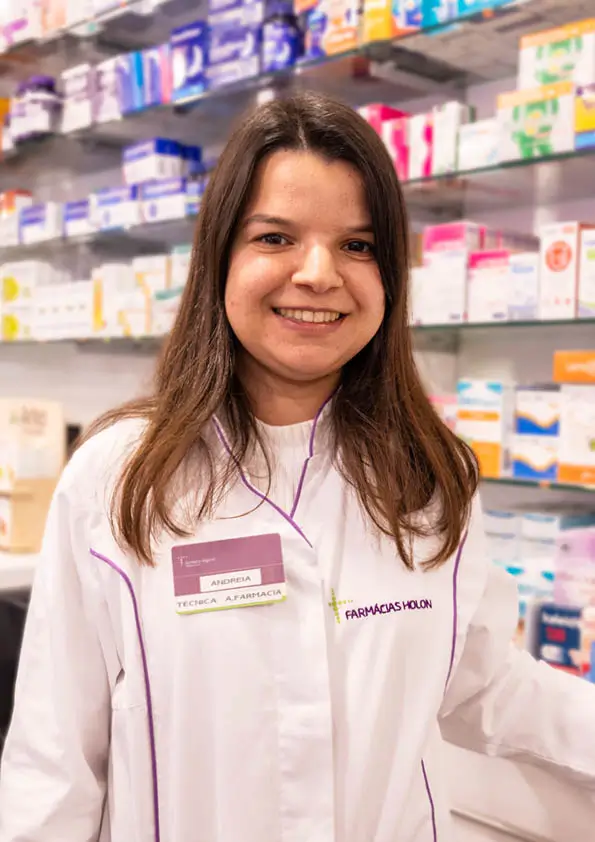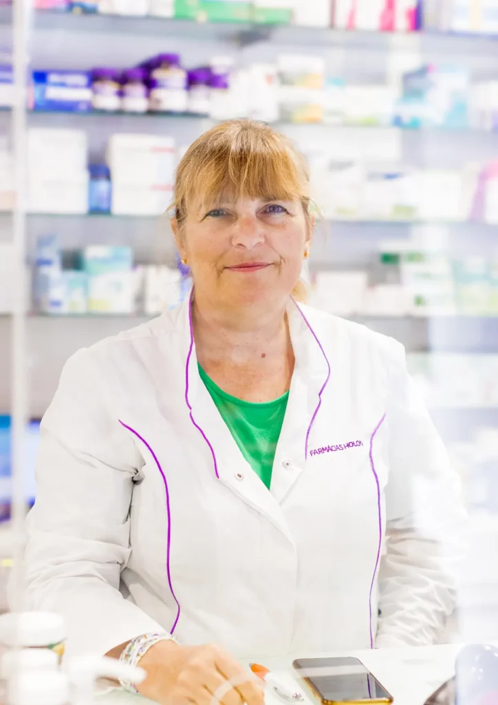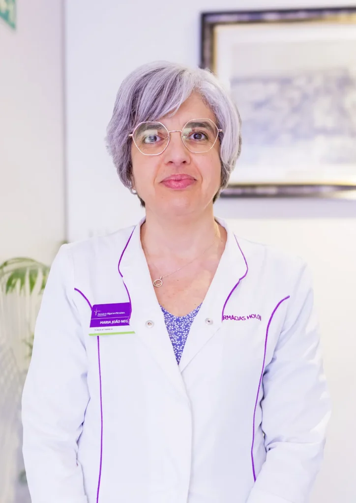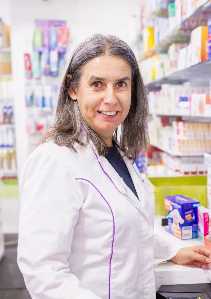 Com 32 anos de experiência, é dedicada ao aconselhamento e ao bem-estar de quem confia na farmácia.